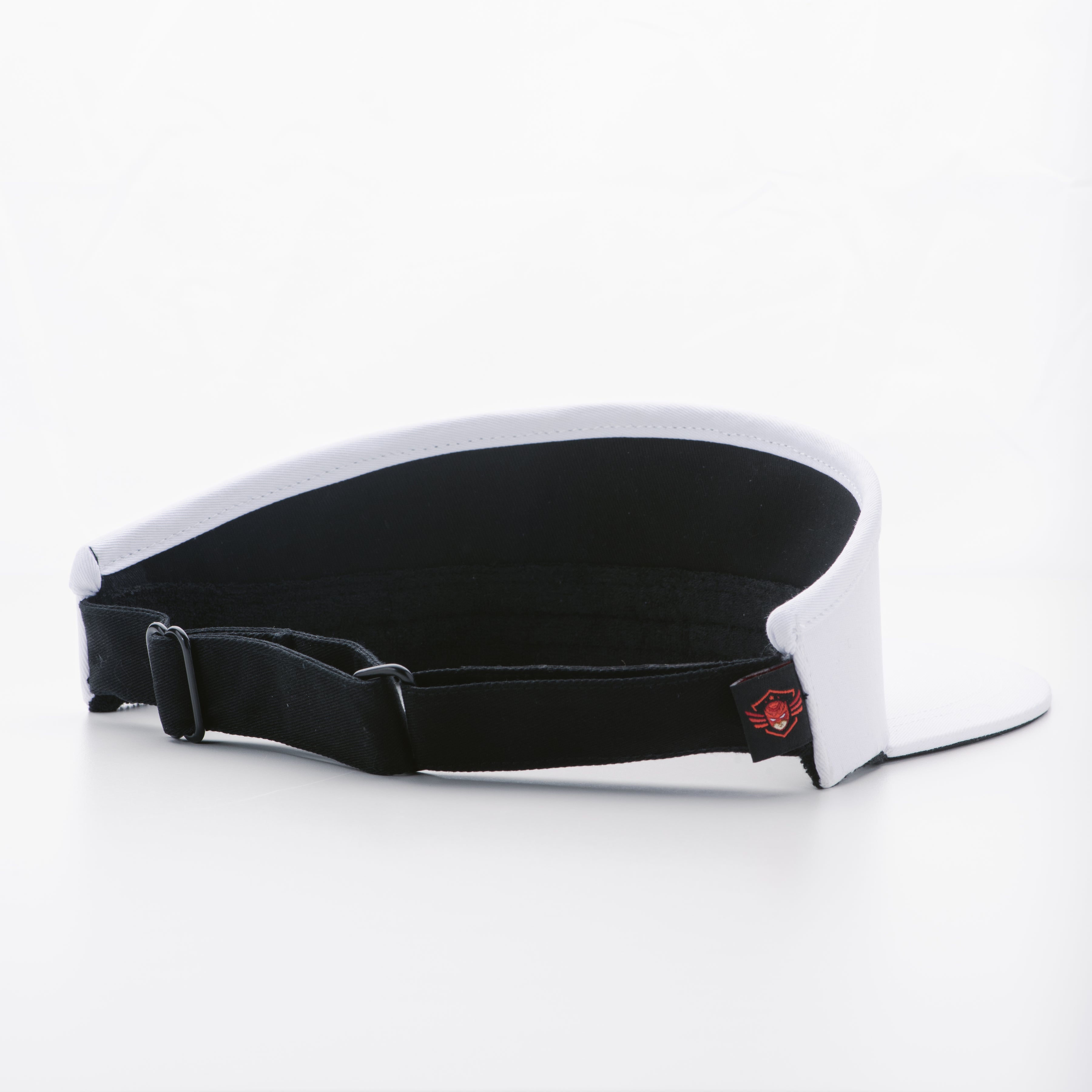 (Our visor fabrics consist of 100% cotton. Our profile and brim sections are made from a durable and thick cardboard material. We use a long-lasting black terry cloth for our headbands. We employ a double stitch around the brim edge to keep the fabric tight. Our embroidery is made with a resistant cotton thread. Absolutely no short cuts have been taken in our manufacturing process.)