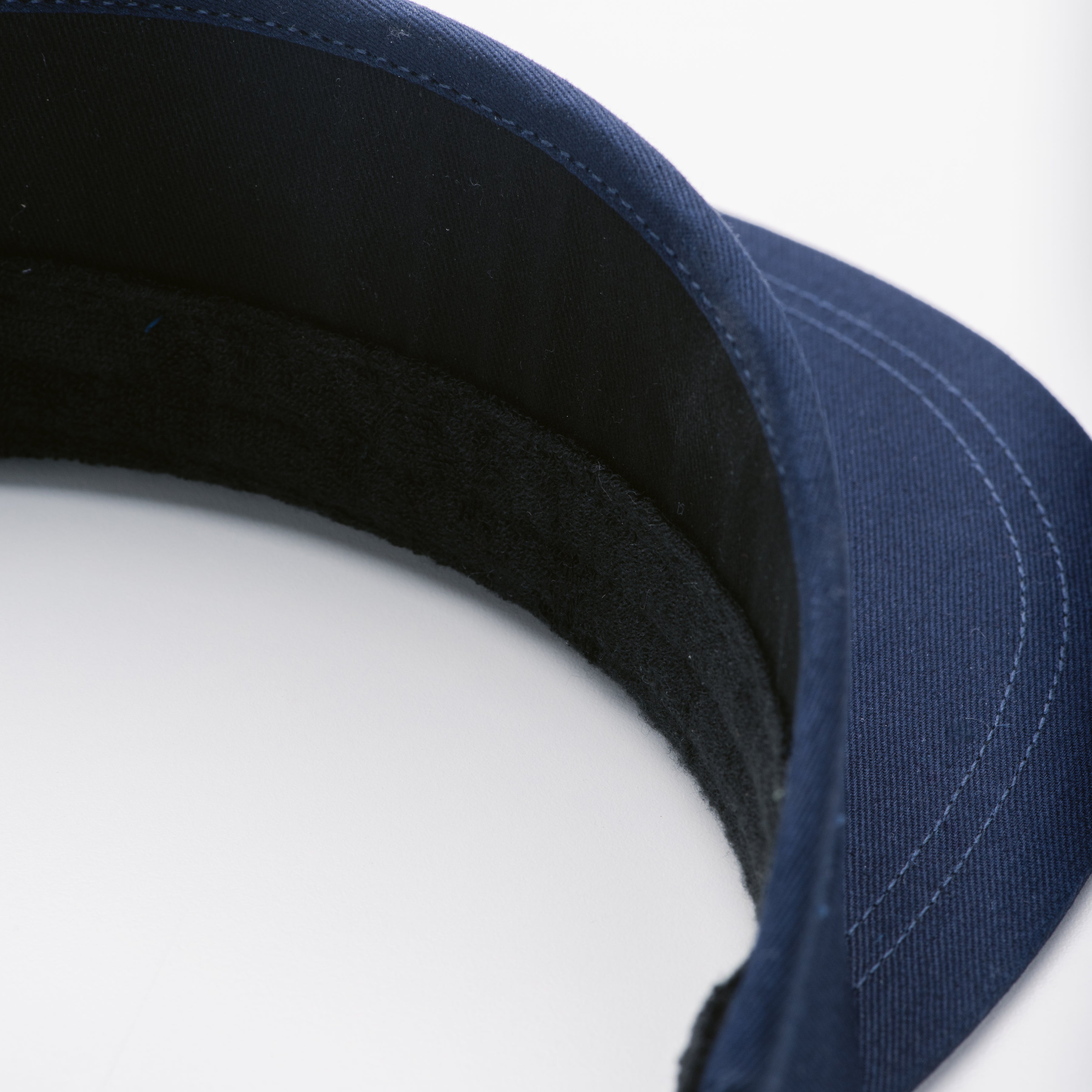 (Our visor fabrics consist of 100% cotton. Our profile and brim sections are made from a durable and thick cardboard material. We use a long-lasting black terry cloth for our headbands. We employ a double stitch around the brim edge to keep the fabric tight. Our embroidery is made with a resistant cotton thread. Absolutely no short cuts have been taken in our manufacturing process.)
